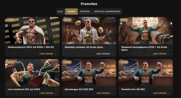 We draaien promoties die terugkeren, zodat je kunt plannen. Weekly Reload geeft 50 Free Spins op de eerste storting die van maandag tot en met donderdag wordt gedaan, terwijl Weekend Reload een 50% bonus tot €700 plus 50 Free Spins toevoegt op de eerste storting die van vrijdag tot en met zondag wordt gedaan. Live casino-spelers kunnen Weekly Live Cashback gebruiken, met 25% cashback op verliezen in de Live Casino-sectie.