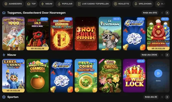 We bieden ongeveer 9.500 titels, met filters die je helpen tussen categorieën te schakelen zonder je favorieten kwijt te raken. Onze portfolio is opgebouwd met providers die veel spelers al kennen, waaronder Play'n GO, Pragmatic Play, Evolution, NetEnt, Microgaming, Betsoft, Quickspin, Yggdrasil, Red Tiger en Spinomenal. Voor slotspel ligt de gemiddelde RTP rond 96%, en je kunt doorgaans de RTP per game controleren in het informatiepaneel. Sportsbook is ook beschikbaar binnen hetzelfde account, met aparte sportbonussen en boosts.