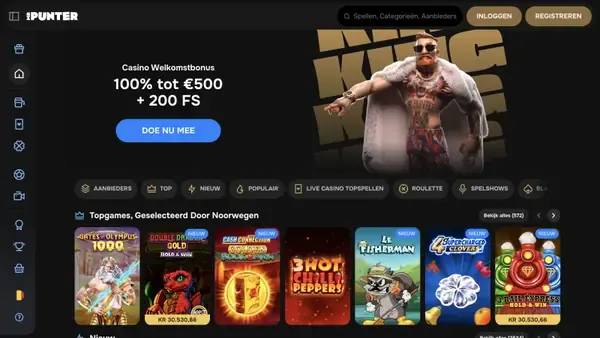 Onze belangrijkste casino-aanbieding bij Mrpunter Casino is een 100% matchbonus tot €500 plus 200 Free Spins. De minimale storting om deze te activeren is €20 en de match wordt berekend op basis van je stortingsbedrag. Winsten uit Free Spins hebben een eigen inzetvereiste, dus het is handig om die apart te volgen in je saldo-overzicht. Voor de inzetvereisten geldt: de bonus volgt 35x (storting + bonus), terwijl Free Spins-winsten 40x volgen.