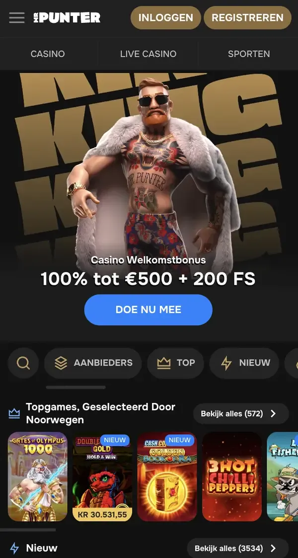 Als je onderweg graag promoties pakt, dan bevatten onze Mrpunter bonus-opties voor Nederland een Casino Welkomstbonus: 100% tot 500 EUR + 200 Free Spins, met een minimale storting van 20 EUR. De inzetvereiste is 35x (Storting + Bonus), en winsten uit Free Spins hebben een vereiste van 40x. We draaien ook een Weekly Reload (50 Free Spins bij de eerste storting op maandag–donderdag), een Weekend Reload Bonus (50% tot 700 EUR + 50 Free Spins bij de eerste storting op vrijdag–zondag) en Weekly Live Cashback van 25% op live-verliezen.